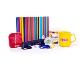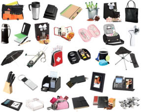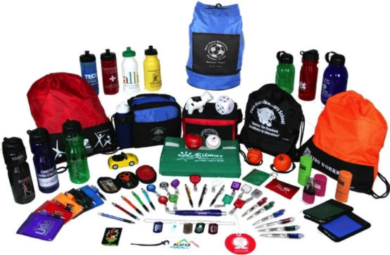 gadgets, bags, Homeware, sports gear, writing instruments as well as signage.